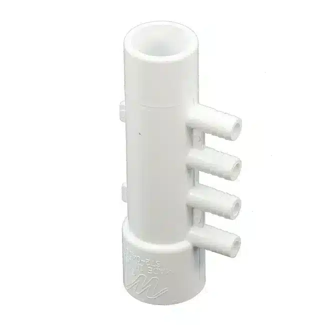 Collecteur d’air 1 1/2 pouce Spigot X 1 1/2 pouce Slip X 3/8 pouce Barbs (10PT) + 4 bouchons