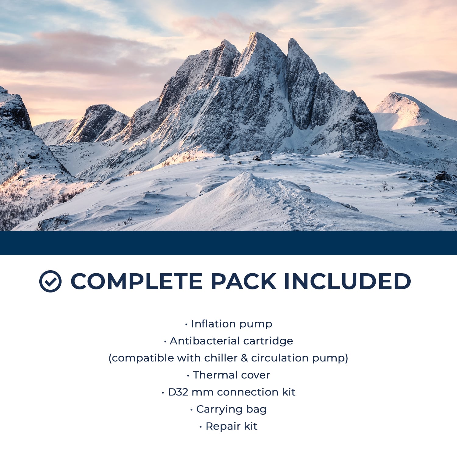 La Järvi est une piscine à structure Drop-Stitch conçue pour les athlètes et les amateurs de fitness souhaitant prendre des bains glacés. Fabriquée avec des matériaux de haute qualité, elle offre une excellente isolation thermique et une immersion stable. La Järvi est facile à installer et à entretenir et présente la particularité d'être compatible avec l'utilisation de glaçons pour refroidir l'eau ou avec le raccordement d'un refroidisseur grâce à son kit de connexion D32 mm. Le refroidisseur peut refroidir l'eau électriquement jusqu'à 3 °C, vous permettant d'économiser 50 kg de glaçons par piscine. Équipements : Boucles de sécurité, fond Drop-Stitch, aération, couverture thermique, poignées, sortie d'eau, entrée d'eau, bouchon de vidange.