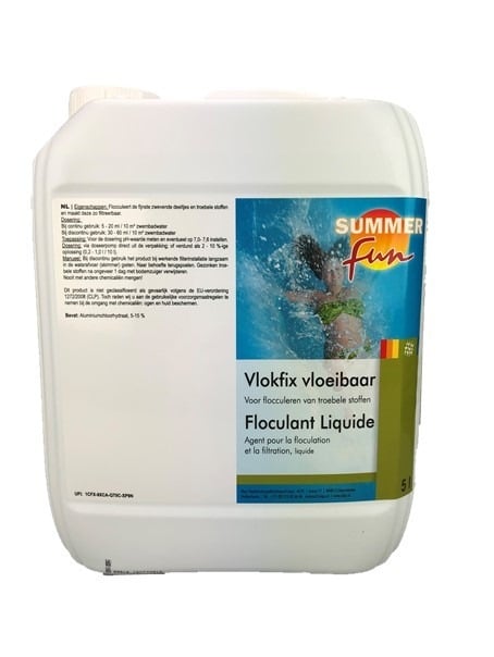 Avec Summer Fun Vlokfix Liquide (5 litres), profitez d'une eau de piscine cristalline et hygiénique, sans les désagréments des particules en suspension ! ✨