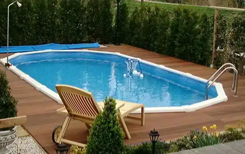 Piscine ovale Interline Sunlake 7,30 x 3,60 m avec kit d'installation : Piscine ovale mesurant 7,30 x 3,60 mètres avec kit d'installation.